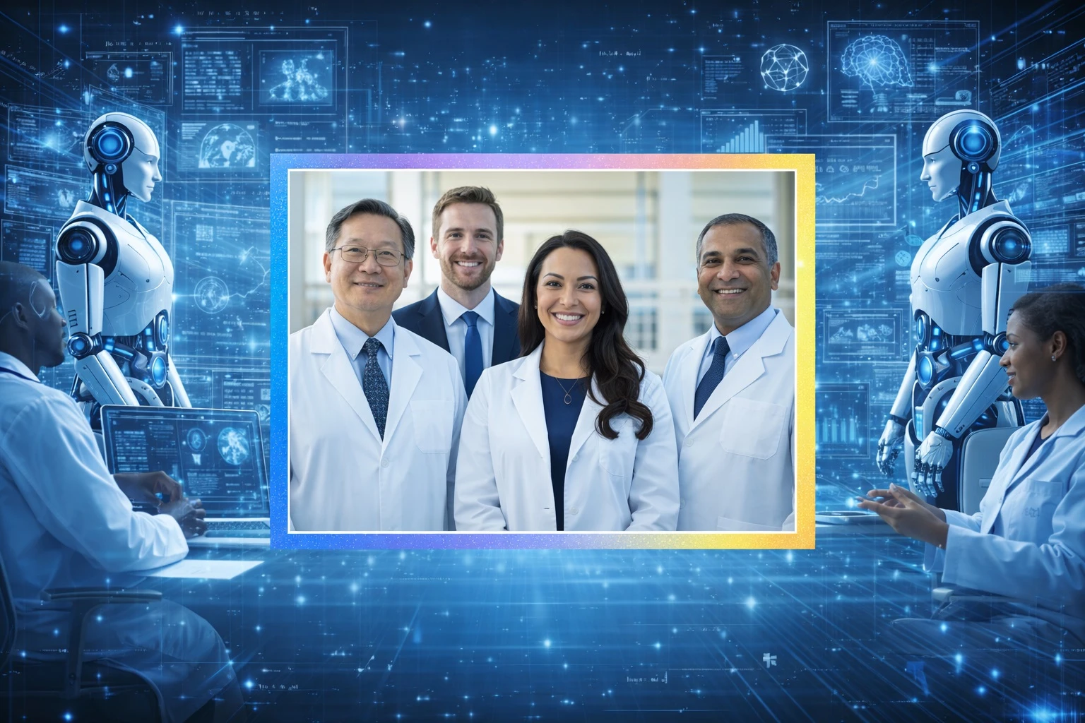 (Pictured in background | Artificial Intelligence Education Division: From Left to Right: Dr. Jian Xu- AI Program Virtual Instructor | Ethan Marlowe, MBA-AI Education Division Director, AI Program Director and AI Program Lead Virtual Instructor | Adrianna Isabella Edwards, BBA-AI Education Division Executive Assistant and Secretary | Dr. Rajesh Patel, Ph. D-BRHT Chief Academic Officer | Dr. Manoj Gupta, Ph. D-AI Program Advisor)