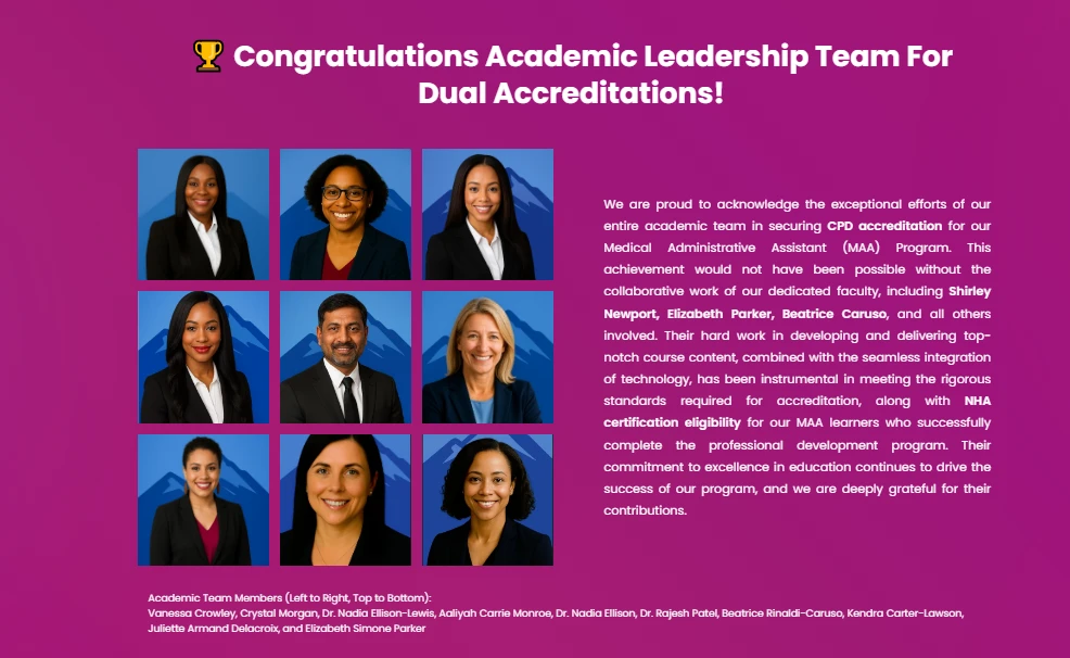 - Dr. Juliette Armand Delacroix, Ed. D. – Accredited Medical Administrative Assistant Program